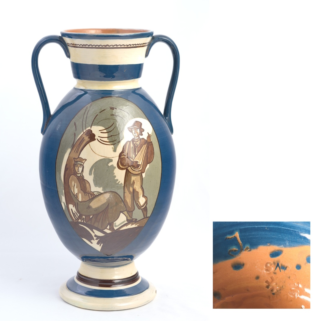 Māla vāze, virpota. Zemglazūras figurāls apgleznojums vienā pusē